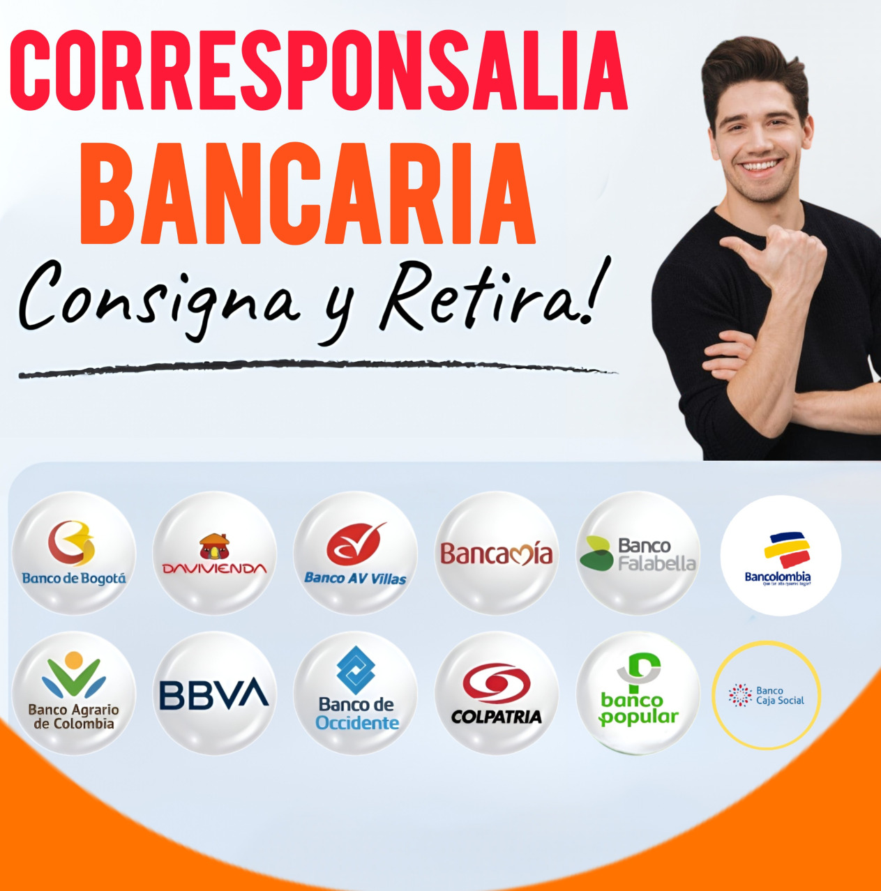 Nustras plataformas de corresponsalias bancarias abarcan mas de 12 bancos, ofrece consignaciones, depósitos y retiros de las entidades aliadas